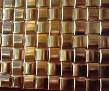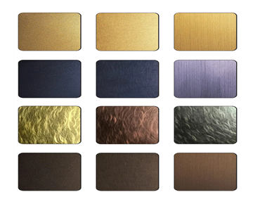 These are structural designs created on the metal to give it a unique shape or texture. Included: Water Ripple, Embossed, Hammered, Perforated, Expanded, Woven Mesh, Laser-Cut, Etched, Corrugated.