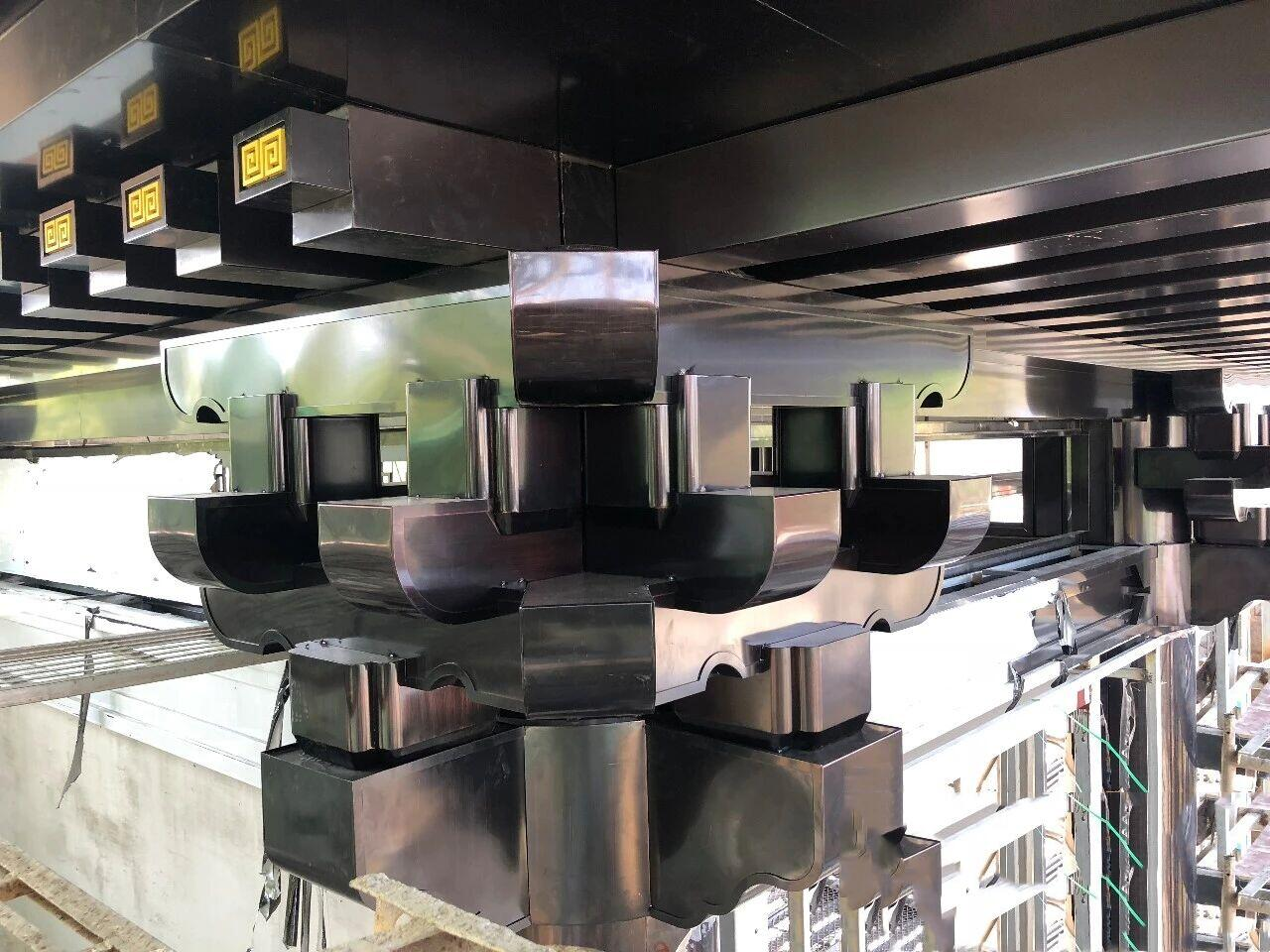 One of the most exciting developments is the reinterpretation of traditional architectural elements using modern stainless steel. We have engineered complex, interlocking bracket systems (resembling traditional “Dougong”) entirely out of metal. These pieces capture the spirit of historic architecture but present it with the clean, precise lines and durability of modern PVD-coated steel. It is the perfect fusion of the past and the future.